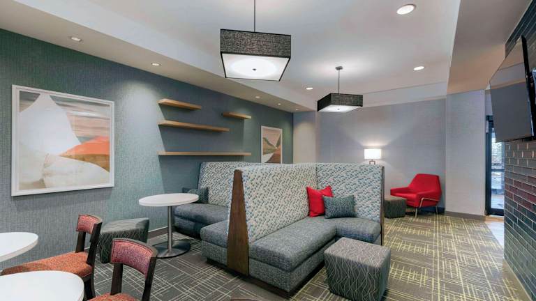 Das Hampton Inn & Suites bietet ein kostenloses Frühstück für die Gäste. Es gibt auch ein Restaurant und eine Bar, wo die Gäste weitere Mahlzeiten und Getränke genießen können.