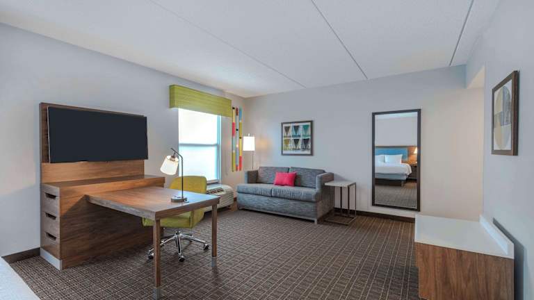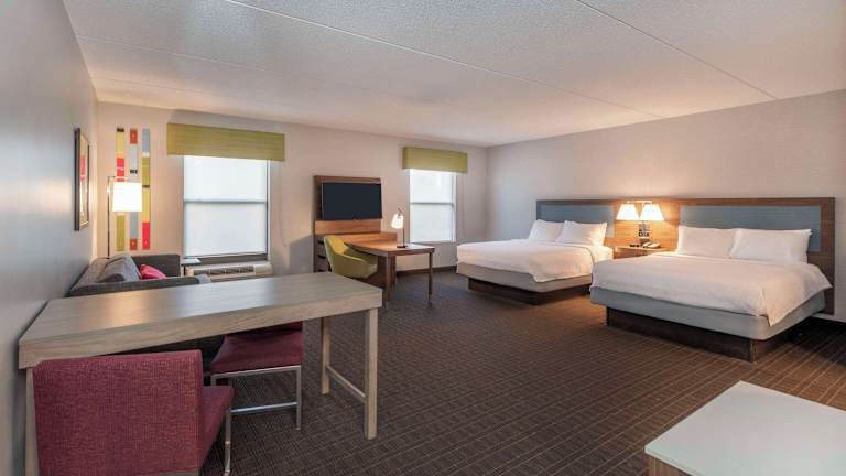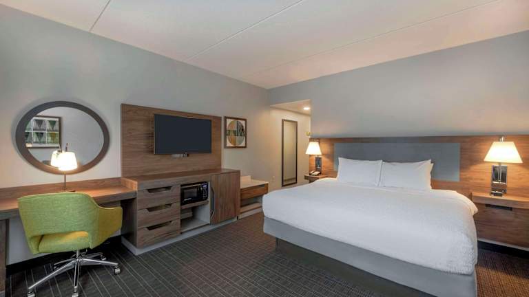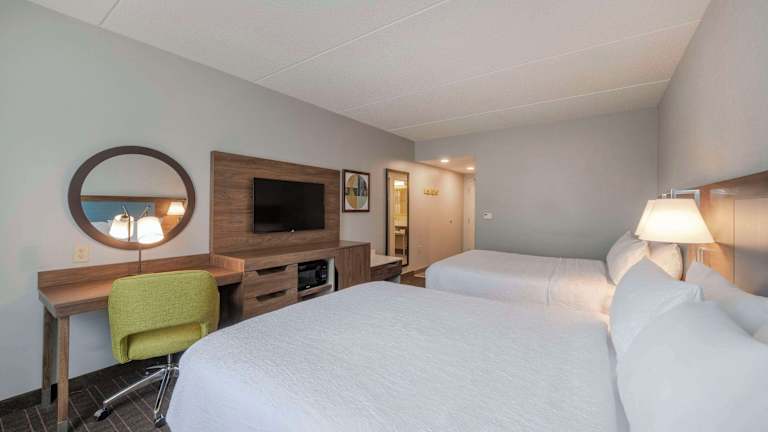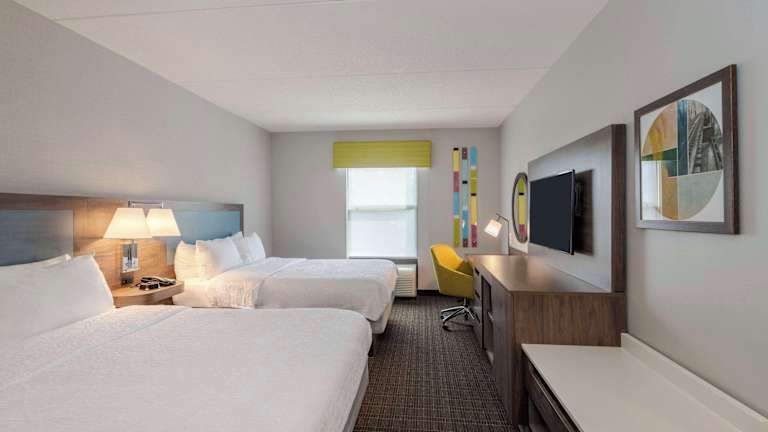 Die 92 Nichtraucherzimmer des Hampton Inn & Suites bieten den Gästen eine komfortable und gut ausgestattete Unterkunft. Die Zimmer verfügen über eine Klimaanlage, einen Flachbild-Kabel-TV, eine Kaffeemaschine und kostenfreies WLAN. Einige Zimmer bieten zusätzliche Annehmlichkeiten wie einen separaten Sitzbereich, ein Schlafsofa und einen Whirlpool. Es gibt auch rollstuhlgerechte Zimmer mit barrierefreiem Badezimmer.