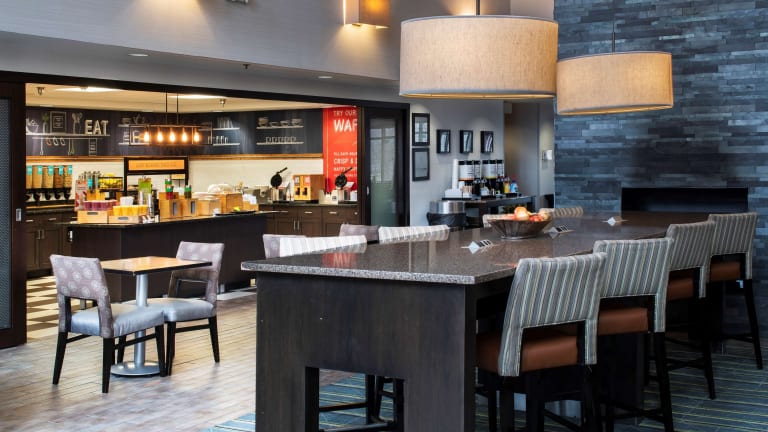 Das Hampton Inn & Suites Lincolnshire bietet ein tägliches Frühstück, das im Übernachtungspreis enthalten ist. Es gibt auch ein Restaurant und eine Bar, in denen Sie weitere Mahlzeiten und Getränke genießen können.