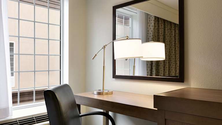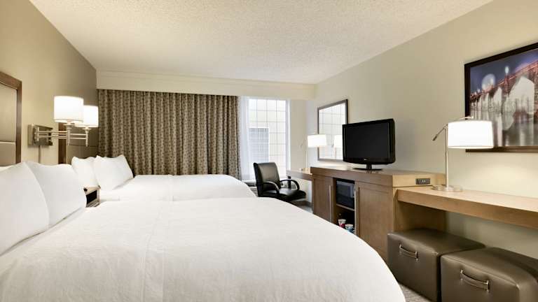 Die Zimmer sind mit Klimaanlage, individueller Heizung, Teppichböden und einem Queensizebett sowie einem Sofabett ausgestattet. Ein Kühlschrank, eine Mikrowelle, eine Minibar und eine Kaffee-/Teemaschine stehen zur Verfügung. Die Badezimmer sind mit einer Dusche, Badewanne oder Whirlwanne ausgestattet. Besonderheiten sind Rollstuhlgerechte Zimmer mit barrierefreiem Badezimmer.