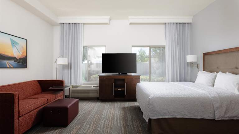 Die Zimmer im Hampton Inn & Suites Palmdale sind geräumig und bieten Annehmlichkeiten wie eine Mikrowelle, einen Kühlschrank und eine Kaffeemaschine. Kostenfreie Pflegeprodukte, ein Schreibtisch und ein 32-Zoll-LCD-TV sorgen für zusätzlichen Komfort. Die Zimmer sind gut ausgestattet und bieten alles, was Sie für einen angenehmen Aufenthalt benötigen.