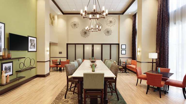 Im Hampton Inn & Suites Philadelphia Montgomeryville können die Gäste ein köstliches Frühstück genießen, das im Preis inbegriffen ist. Das Hotel bietet auch eine Bar, in der Gäste Getränke und Snacks genießen können. In der Umgebung des Hotels finden Sie auch eine Vielzahl von Restaurants und Cafés, in denen Sie lokale und internationale Küche probieren können.