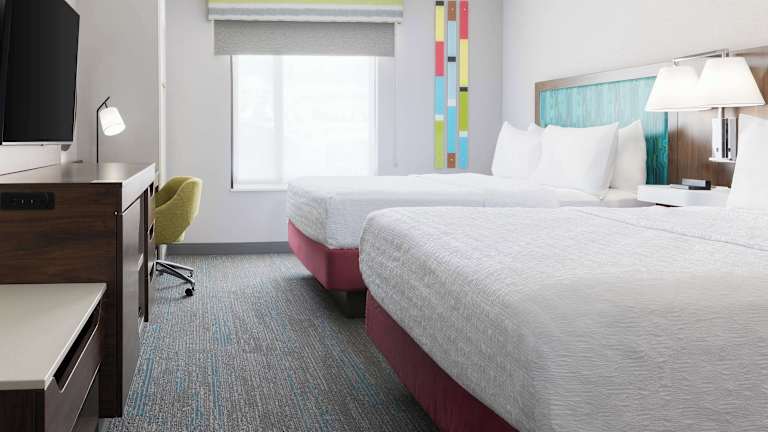 Jedes Zimmer ist mit einem Schreibtisch, einem Flachbild-TV und kostenlosen Pflegeprodukten ausgestattet.