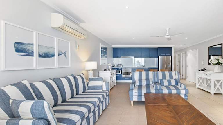 Das klimatisierte Apartment im Hotel Hamptons Meets Hervey Bay In Upmarket Resort - Ocean Views verfügt über 3 Schlafzimmer und 3 Badezimmer. Es bietet Platz für eine größere Gruppe oder eine Familie. Das Apartment ist geschmackvoll eingerichtet und verfügt über eine voll ausgestattete Küche, einen Essbereich und einen Balkon mit Meerblick. Bettwäsche und Handtücher werden gestellt, so dass sich die Gäste um nichts kümmern müssen.