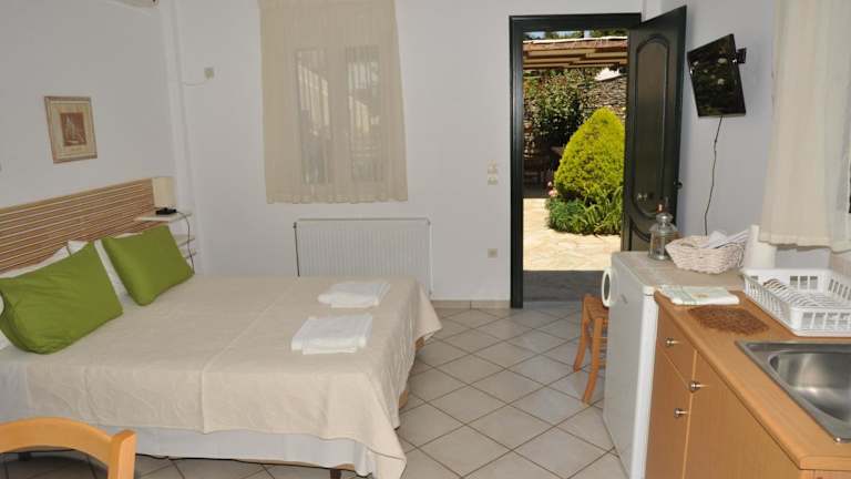 Handakas Studios ist eine privatrechtliche Unterkunft, die modernen Komfort mit einer ruhigen Umgebung verbindet. Die Anlage verfügt über einen Garten mit Terrasse und bietet Bergblick. Die Wohneinheiten sind gut ausgestattet und bieten eine angenehme Atmosphäre. Die Kapazität für den Check-in und Check-out ist von 14:00 bis 22:00 Uhr bzw. von 07:00 bis 11:00 Uhr. Die Unterkunft gewährleistet ein rauchfreies Umfeld und hat klare Vorgaben für die Mindestaufenthaltsalter: Das Mindestalter für den Check-in ist 18 Jahre, während keine Altersbeschränkung für andere Gäste besteht. Haustiere sind leider nicht erlaubt.