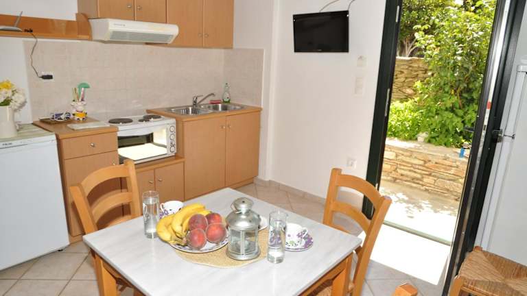 Die Zimmer im Handakas Studios sind mit Klimaanlage ausgestattet und verfügen über eine voll ausgestattete Küche mit Essbereich. Jede Wohneinheit besitzt einen Flachbild-TV und ein eigenes Bad mit Dusche, kostenlosen Pflegeprodukten sowie einem Haartrockner. Zusätzlich bietet jede Wohneinheit einen Balkon mit Gartenblick, was einen angenehmen Aufenthalt gewährleistet.