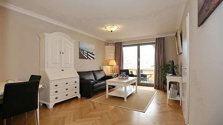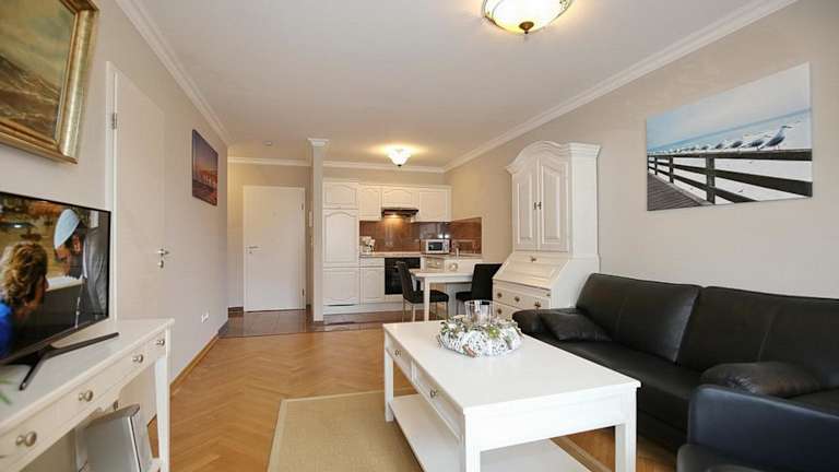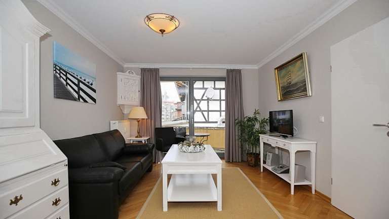 Das Apartment Hanse Hof Wohnung 12 bietet ein komfortables Schlafzimmer, in dem Sie sich ausruhen und entspannen können. Der Wohnbereich verfügt über Sat-TV, um Ihnen Unterhaltungsmöglichkeiten zu bieten. Die voll ausgestattete Küche bietet Ihnen die Möglichkeit, Ihre eigenen Mahlzeiten zuzubereiten, mit einem Kühlschrank, einem Backofen, einer Waschmaschine, einer Mikrowelle und einem Kochfeld. Ein Highlight des Apartments ist der Balkon, von dem aus Sie einen wunderschönen Meerblick genießen können.