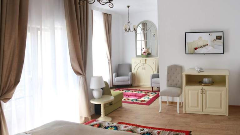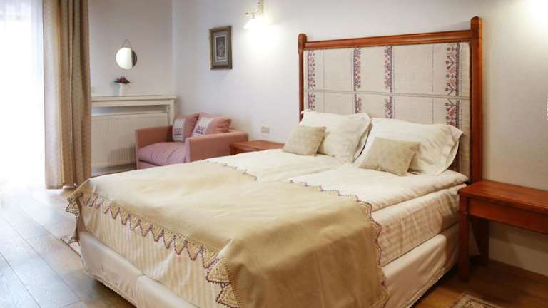 Hanul Brancovenesc ist eine Nichtraucherunterkunft, die Übernachtungsmöglichkeiten mit kostenlosen Fahrrädern, einem kostenlosen Privatparkplatz, einem Garten und einer Terrasse bietet.