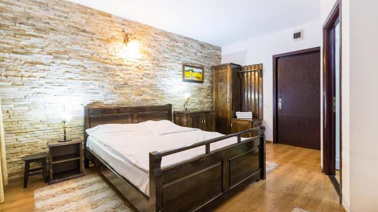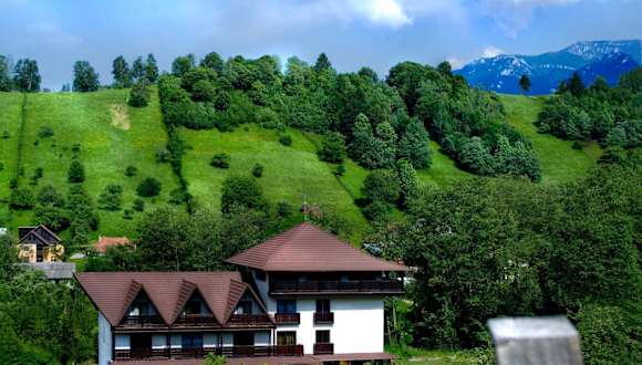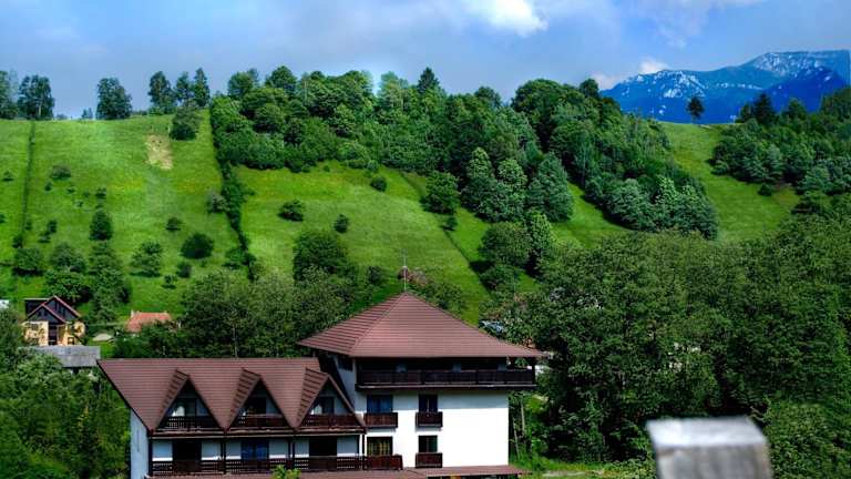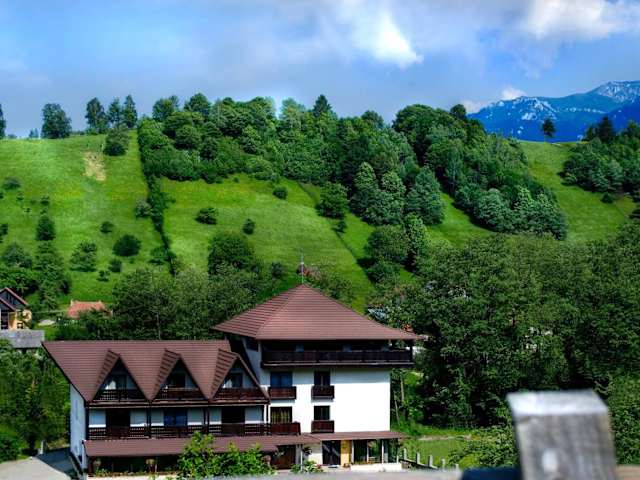 Das Hanul Simon Pensiune & Restaurant ist eine charmante Pension in Bran, umgeben von malerischen Wiesen und Hügeln. Die günstige Lage ermöglicht es den Gästen, das berühmte Schloss Bran in nur 3 Fahrminuten zu erreichen und das Skigebiet Zanoaga in 4 km Entfernung zu erkunden. Die Zimmer sind komfortabel eingerichtet und verfügen über Annehmlichkeiten wie einen LCD-Kabel-TV, WLAN und einen Balkon. Das Restaurant der Pension bietet traditionelle rumänische Gerichte, die auf der Terrasse oder im herrlichen Garten genossen werden können. Die freundlichen Mitarbeiter stehen rund um die Uhr zur Verfügung und organisieren gerne Ausflüge in die umliegenden Berge sowie Käse- und Weinproben.