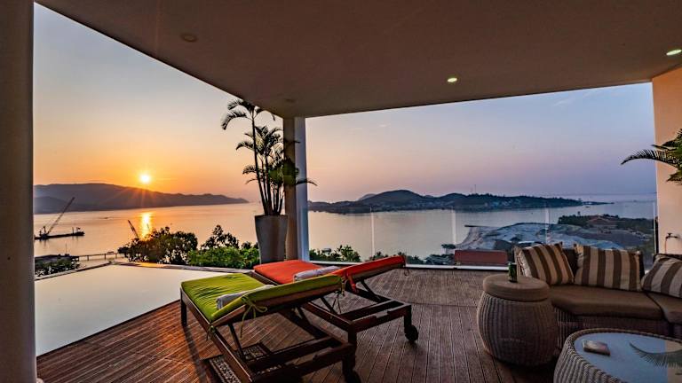 Die Hapier Villa ist eine Deluxe Villa, die mit einem eigenen Pool und einer Terrasse ausgestattet ist. Die Villa bietet einen atemberaubenden Blick auf die Berge, das Meer und die Stadt. In der voll ausgestatteten Küche finden Sie einen Essbereich mit einem Esstisch, einem Kochfeld, Küchenutensilien und einem Kühlschrank. Zur Unterhaltung stehen ein Flachbild-Kabel-TV, Netflix, ein JBL Soundsystem, Apple TV und ein Karaoke-System mit DENON Hi-Fi Sound-System zur Verfügung.