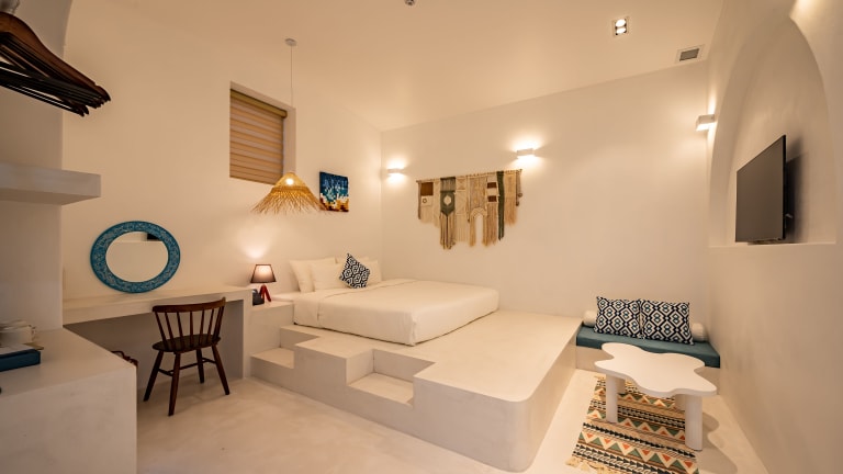 Die Zimmer im Happiness Hotel sind komfortabel und stilvoll eingerichtet. Jedes Zimmer verfügt über einen Balkon, von dem aus Sie die Aussicht auf die Umgebung genießen können. Zur Ausstattung gehören ein Schreibtisch, ein eigenes Bad mit Dusche und kostenlosen Pflegeprodukten, ein Flachbild-TV und Klimaanlage. Einige Zimmer bieten zudem eine Terrasse und eine Minibar.