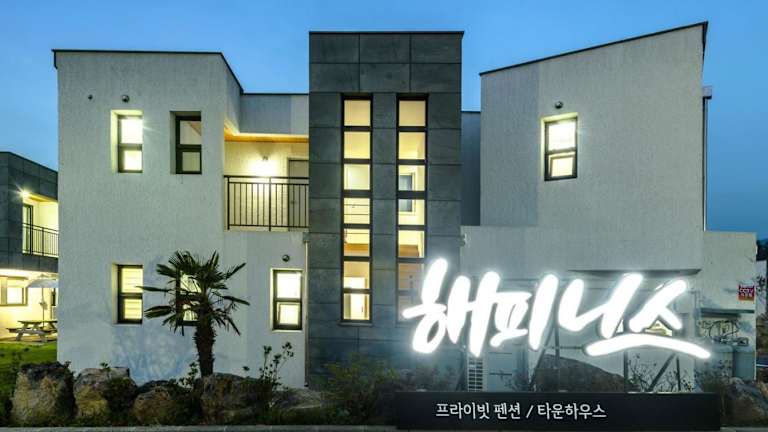 Die Happiness Pension in Jeju bietet Ihnen einen komfortablen und erholsamen Aufenthalt in einer malerischen Umgebung. Genießen Sie die Annehmlichkeiten wie den eigenen Pool, den Garten und die Grillmöglichkeiten. Das Ferienhaus verfügt über geräumige Zimmer, eine gut ausgestattete Küche und mehrere Badezimmer. Die Lage ist ideal, um die Sehenswürdigkeiten von Jeju zu erkunden.