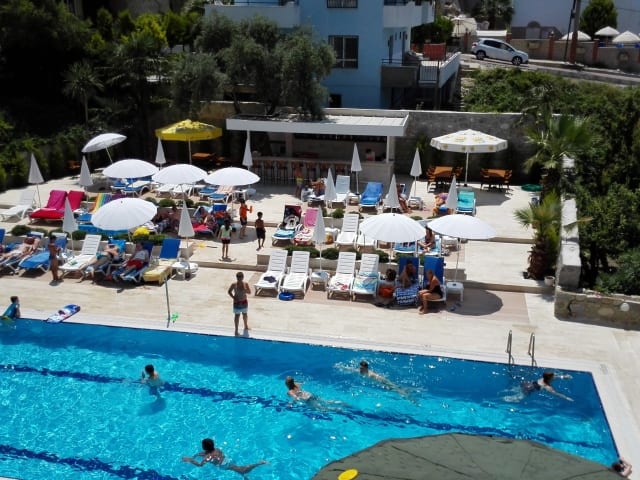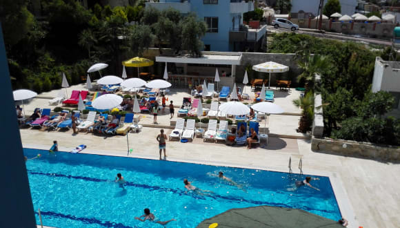Quartieren Sie sich im 3-Sterne Hotel Happy Appart ein und entdecken Sie, was die Stadt Kusadasi und ihre Umgebung zu bieten haben. In der Nähe des Hotels können die Feriengäste den Ladies Beach besichtigen. Der Kustur Beach, die Strandpromenade Kusadasi, die Vogelinsel / Taubeninsel sowie der Hafen Kusadasi liegen nicht weit vom Hotel entfernt.