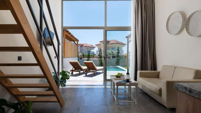 Die Villa umfasst ein Schlafzimmer, ein Wohnzimmer und eine voll ausgestattete Küchenzeile mit einem Kühlschrank und einer Kaffeemaschine. Das Badezimmer ist mit einer Dusche und kostenlosen Pflegeprodukten ausgestattet. Die Villa verfügt über einen Balkon sowie einen eigenen Pool und eine Terrasse.