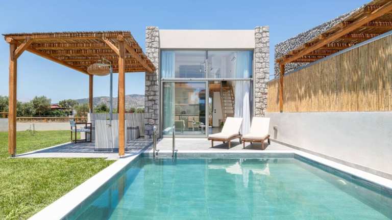 Die Unterkunft Haraki Luxury Villas zeichnet sich durch einen Poolblick aus und bietet einen eigenen Pool sowie einen Garten. Die Villa ist klimatisiert und beinhaltet ein Schlafzimmer, ein Wohnzimmer und eine voll ausgestattete Küchenzeile. Die Ausstattung umfasst auch einen Flachbild-TV mit Satellitenkanälen. Die Villa ist als Nichtraucherunterkunft konzipiert und ist ausschließlich für Erwachsene vorgesehen. Es sind keine Feiern wie Junggesellenabschiede erlaubt.