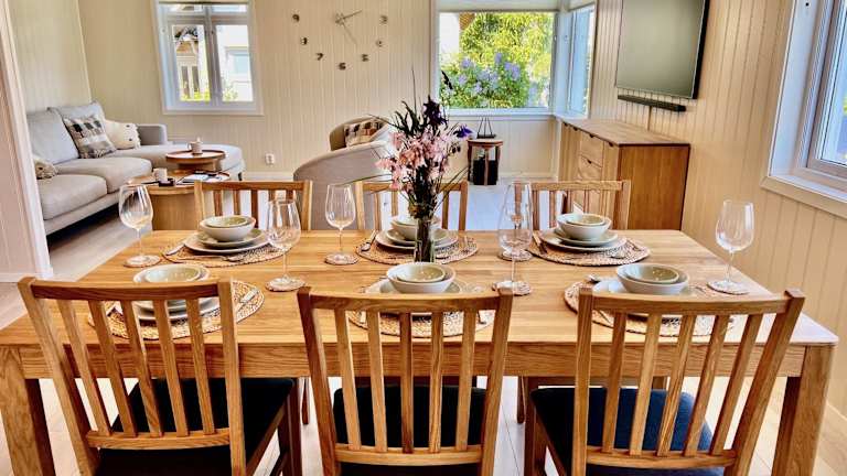 Das Ferienhaus Hardangerfjord View liegt in Øystese und bietet Ihnen eine beeindruckende Lage direkt am Fjord. Von hier aus haben Sie einen atemberaubenden Blick auf die umliegenden Berge. Die Umgebung lädt zu verschiedenen Aktivitäten ein, darunter Wandern, Skifahren und Radfahren. In der Nähe befinden sich auch verschiedene Sehenswürdigkeiten und Attraktionen, die es zu entdecken gilt. Der Flughafen Bergen ist etwa 82 km entfernt und gut erreichbar.