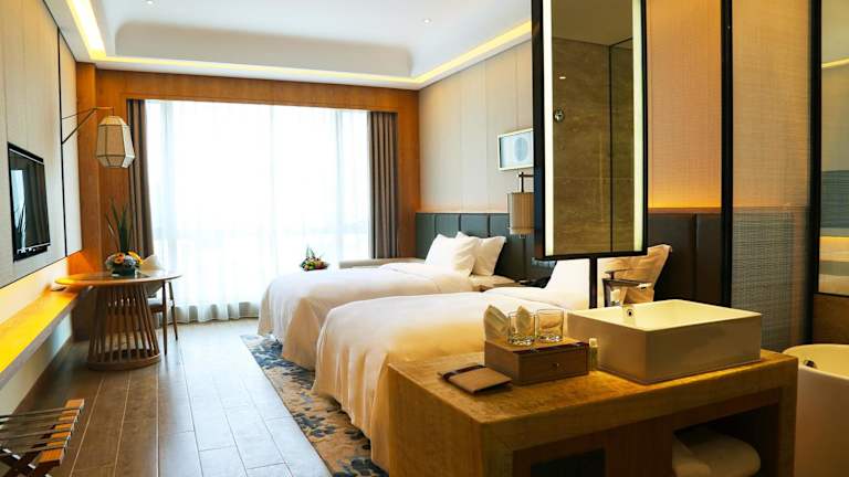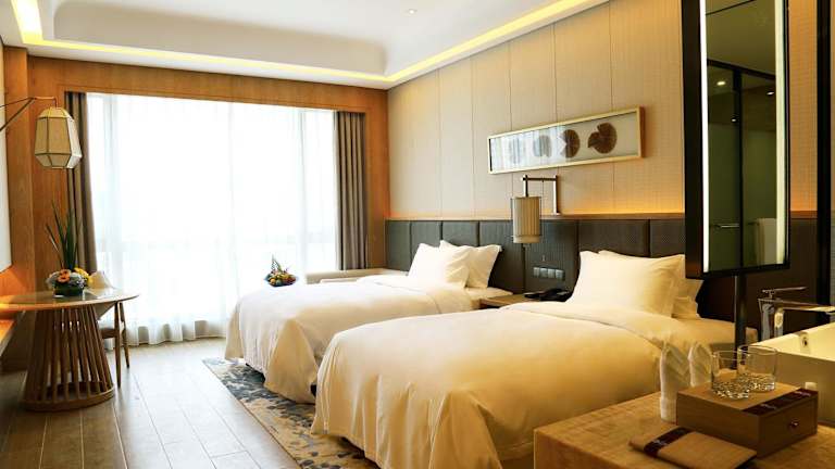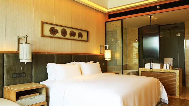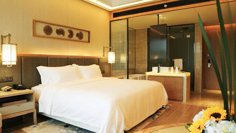 Die Zimmer im Harman Resort Hotel Sanya sind stilvoll eingerichtet und bieten einen komfortablen Rückzugsort nach einem erlebnisreichen Tag. Alle Zimmer verfügen über Annehmlichkeiten wie Flachbild-Kabel-TV, einen Wasserkocher und ein eigenes Bad mit Dusche. Einige Zimmer bieten auch einen Meerblick und einen gemütlichen Sitzbereich.