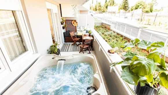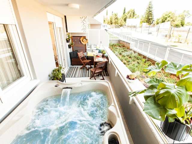 Die Ferienwohnung ist mit einem Schlafzimmer, einem Wohnzimmer und einer voll ausgestatteten Küche mit Kühlschrank und Kaffeemaschine ausgestattet. Das Badezimmer verfügt über eine Dusche und einen Whirlpool. Für die Gäste sind Handtücher und Bettwäsche bereitgestellt. Die Unterkunft ist klimatisiert und bietet zusätzlich Annehmlichkeiten wie Schallisolierung.