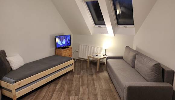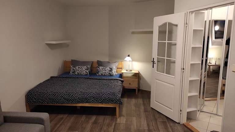 Die Ferienwohnung besteht aus einem Schlafzimmer und ist ausgestattet mit einer Küche, die einen Ofen beinhaltet. Sie verfügt über ein Badezimmer mit einer Badewanne und einer Waschmaschine. Ein Flachbild-TV ist ebenfalls vorhanden.