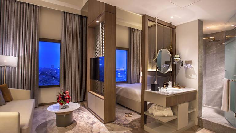 Die Zimmer im HARRIS Hotel & Conventions Gubeng sind modern und komfortabel eingerichtet. Alle Zimmer sind klimatisiert und verfügen über Annehmlichkeiten wie einen Flachbild-Kabel-TV, einen Safe und eine Minibar. Ein Wasserkocher und eine Sitzecke sind ebenfalls vorhanden. Das eigene Badezimmer ist mit einer Warm- und Kaltwasserdusche, einem Haartrockner und Bademänteln ausgestattet. Von den Zimmern aus haben Sie einen schönen Blick auf die Stadt.