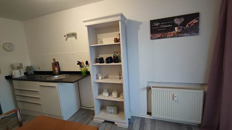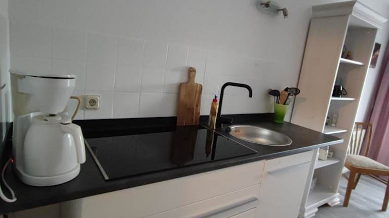 In der Unterkunft steht eine voll ausgestattete Küchenzeile zur Verfügung, die mit einem Kühlschrank und einer Kaffeemaschine ausgestattet ist. Es wird keine weitere Verpflegung angeboten.
