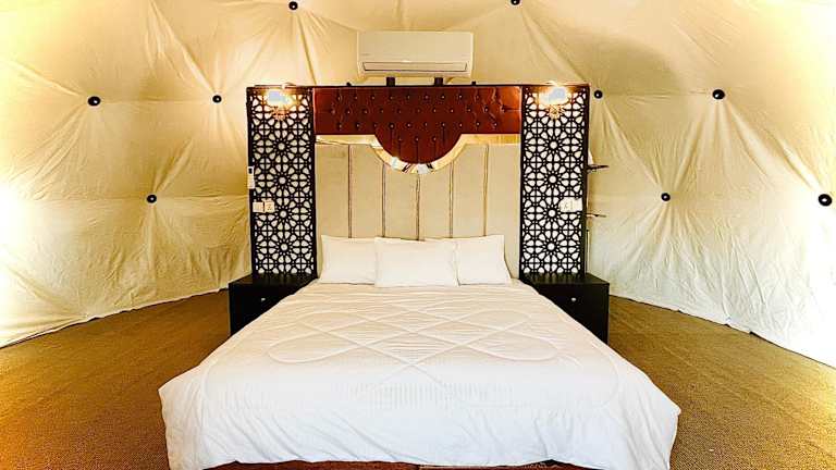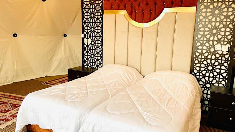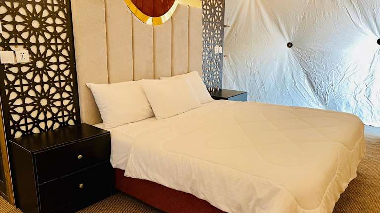 Das Hasan Zawaideh Luxury Camp 2 in Wadi Rum bietet seinen Gästen eine einzigartige Erfahrung inmitten der atemberaubenden Landschaft von Wadi Rum. Mit einem hauseigenen Restaurant, kostenfreiem WLAN und einem freundlichen und hilfsbereiten Personal, das rund um die Uhr zur Verfügung steht, ist dieses Camp der perfekte Ort, um den Charme der Wüste zu erleben. Genießen Sie ein vegetarisches Frühstück, erkunden Sie die Umgebung beim Wandern und entspannen Sie sich auf der Terrasse oder im Garten des Camps.