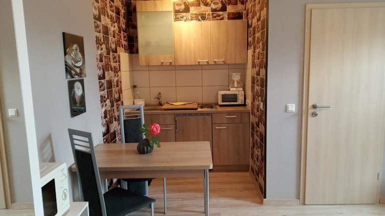 Die Ferienwohnung verfügt über ein Schlafzimmer, ein Wohnzimmer und eine voll ausgestattete Küche mit Kühlschrank und Kaffeemaschine. Das Badezimmer ist mit einer Dusche und einem Haartrockner ausgestattet. Ein Flachbild-TV mit Kabelkanälen steht ebenfalls bereit. Bettwäsche, Handtücher und die Reinigung der Unterkunft erfolgen gemäß den Richtlinien der örtlichen Behörden.