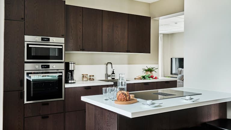 Die Unterkunft ist mit einer modernen Küche ausgestattet, die einen Kühlschrank, einen Geschirrspüler und einen Ofen umfasst. Es sind keine weiteren Informationen zu Essensmöglichkeiten vorhanden.