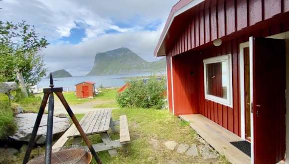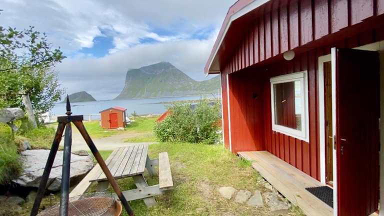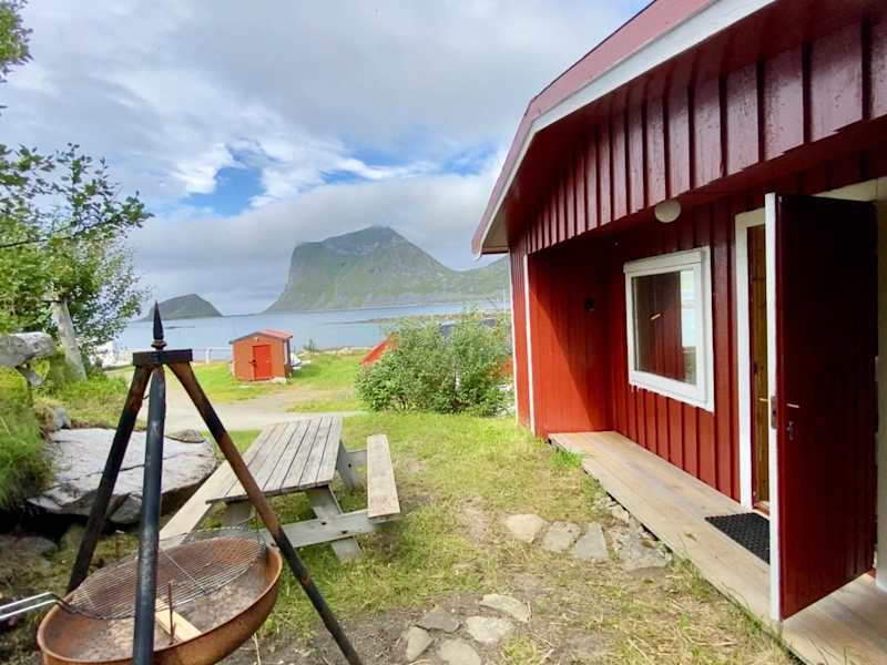 Haukland Camp Cabin bietet Übernachtungsmöglichkeiten mit einem beeindruckenden Blick auf die Berge. Die Unterkunft verfügt über einen Garten und bietet eine entspannte Atmosphäre.