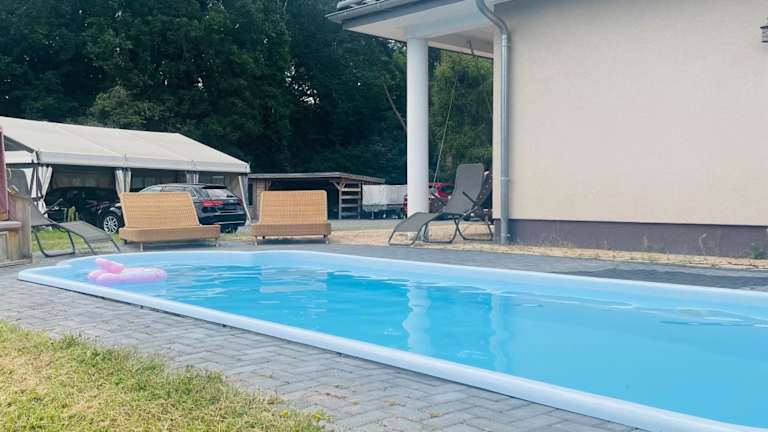 Haus 4 Zimmer bei Berlin bietet Übernachtungsmöglichkeiten mit Gartenblick in einer charmanten Ferienwohnung. Die Unterkunft verfügt über einen eigenen Pool sowie eine Terrasse und ist in einem gut gepflegten Bereich untergebracht. Haustiere sind erlaubt und es werden zahlreiche Annehmlichkeiten angeboten, um den Aufenthalt so angenehm wie möglich zu gestalten.
