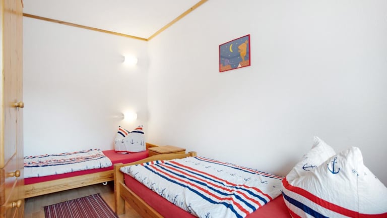 Die Ferienwohnung umfasst zwei Schlafzimmer und ein Badezimmer mit Dusche. Sie ist ausgestattet mit einem TV mit Satellitenkanälen sowie einer gut ausgestatteten Küche, die einen Kühlschrank und einen Geschirrspüler enthält. Die Unterkunft eignet sich für einen komfortablen Aufenthalt mit modernen Annehmlichkeiten.
