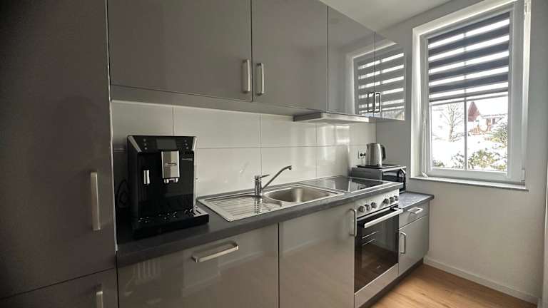 Die Zimmer in der Unterkunft Haus Alpina verfügen über einen Sitzbereich mit einem Flachbild-TV und ein eigenes Badezimmer, das mit einem Haartrockner und einer Dusche ausgestattet ist. Die Küchenzeile umfasst einen Kühlschrank, einen Ofen, eine Mikrowelle und eine Kaffeemaschine.