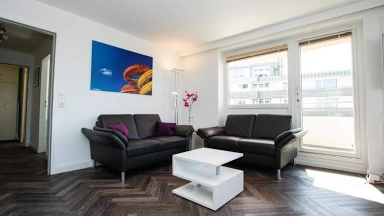 Die Ferienwohnung befindet sich in Westerland, etwa 100 m vom Strand entfernt. In der Nähe befindet sich das Freizeitbad Sylter Welle (200 m) sowie das Sylt Aquarium (800 m). Der Bahnhof Westerland ist in einer Entfernung von 1,6 km erreichbar, der Flughafen Sylt liegt 3 km von der Unterkunft entfernt.