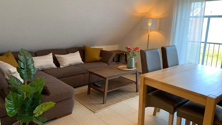Das Haus-am-See-Kolktstr-1-OG-links ist eine Ferienwohnung, die einen Balkon bietet und mit kostenlosem WLAN ausgestattet ist. Sie umfasst zwei Schlafzimmer und eine Küchenzeile, die durch einen Kühlschrank und einen Geschirrspüler ergänzt wird. Die Unterkunft ist eine Nichtraucherunterkunft und bietet Gartenmöbel zur Nutzung im Außenbereich.