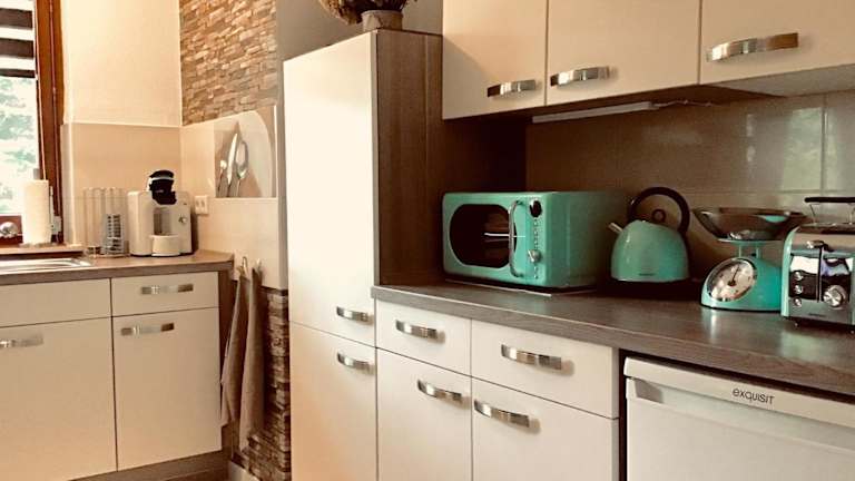 Das Haus am See bietet eine voll ausgestattete Küche, in der Sie Ihre eigenen Mahlzeiten zubereiten können. Alternativ können Sie den Grill nutzen, der Ihnen zur Verfügung steht. In der näheren Umgebung finden Sie auch Restaurants und Cafés, in denen Sie lokale Spezialitäten genießen können.