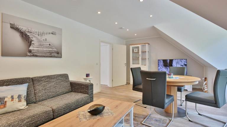 Die Unterkunft Haus am Seehof 9 Ferienwohnung Ostseeliebe Nr 5 befindet sich in Sierksdorf, 200 Meter vom Strand entfernt. Der nahegelegene Vergnügungspark HANSA-PARK ist 1,5 Kilometer entfernt, und die Stadt Lübeck mit ihrem Hauptbahnhof liegt 29 Kilometer entfernt. Der nächstgelegene Flughafen ist der Flughafen Lübeck in 37 Kilometer Entfernung.