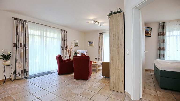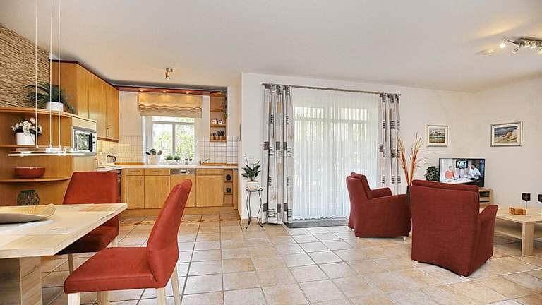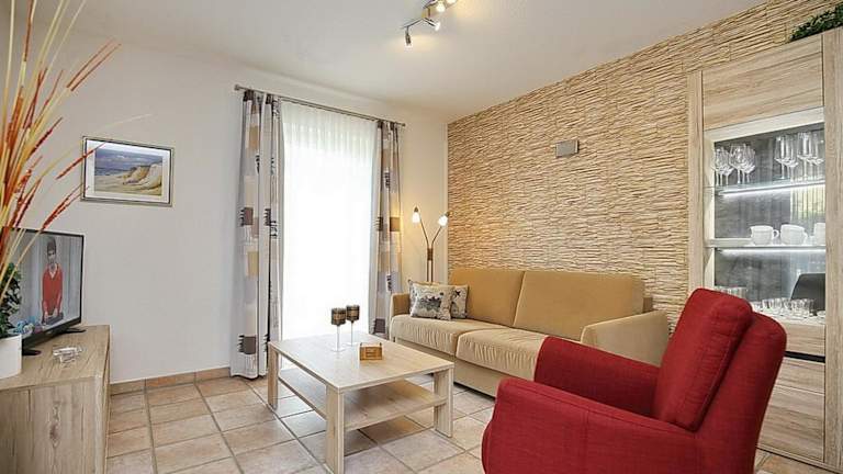Das Apartment im Haus am Teich Wohnung 13 befindet sich im Erdgeschoss und verfügt über ein gemütliches Schlafzimmer. Zur Ausstattung gehören auch Kabel-TV und eine voll ausgestattete Küche mit allen notwendigen Geräten wie Kühlschrank, Geschirrspüler, Waschmaschine, Backofen und Mikrowelle. Kostenloses WLAN ist ebenfalls vorhanden.
