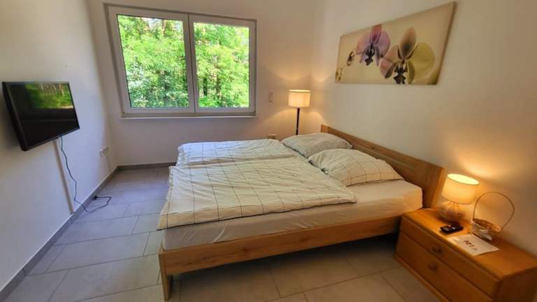 Die Ferienwohnung verfügt über zwei Schlafzimmer, ein Wohnzimmer, einen Flachbild-TV, eine gut ausgestattete Küche mit Kühlschrank und Geschirrspüler sowie ein Badezimmer mit Dusche. Handtücher und Bettwäsche werden bereitgestellt.