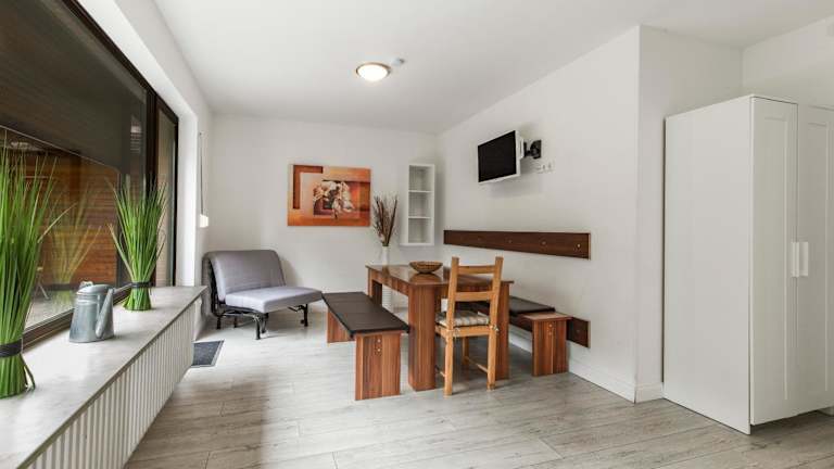 Das Hotel bietet keine Verpflegung, aber in der voll ausgestatteten Küche können Gäste ihre eigenen Mahlzeiten zubereiten. Alternativ gibt es in der Umgebung viele Restaurants und Cafés, in denen Sie lokale und internationale Küche genießen können.