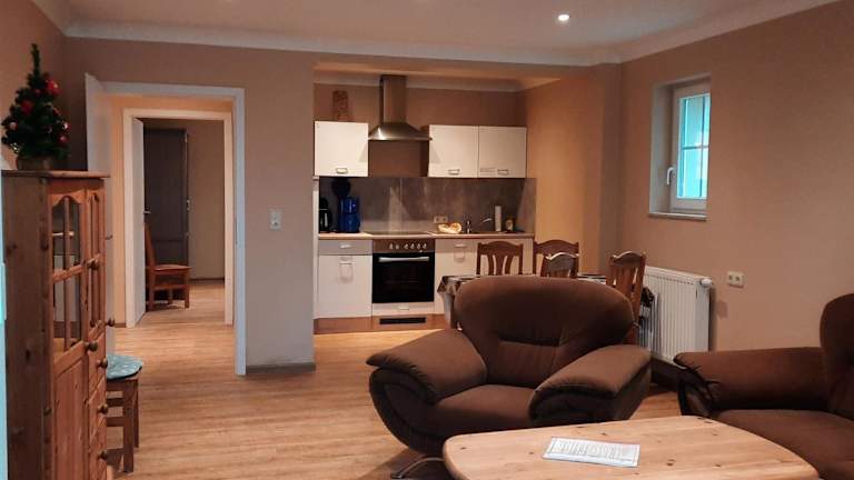 Haus Anni bietet eine Vielzahl von Annehmlichkeiten, darunter Massageservices, Grillmöglichkeiten sowie einen Kinderspielplatz. Die Unterkunft ist eine Nichtraucherunterkunft, in der öffentliche und private Bereiche rauchfrei sind. Die Unterkunft gestattet keine Junggesellen-/Junggesellinnenabschiede oder ähnliche Feiern. Die Kommunikation erfolgt hauptsächlich in Deutsch und Russisch. Eine Vorauszahlung per Überweisung ist erforderlich, und die Unterkunft wird nach der Buchung die Kontodaten mitteilen.