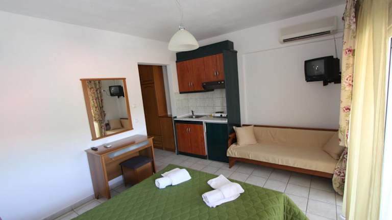 Das Badis Haus bietet komfortable Unterkünfte in Form von Zimmern, Studios und Apartments mit einem Schlafzimmer. Alle Unterkünfte sind klimatisiert und verfügen über kostenfreies WLAN, Sat-TV, einen Mini-Kühlschrank und einen Safe. Einige Zimmer bieten auch Kochplatten und einen Haartrockner. Genießen Sie den Komfort und die Annehmlichkeiten dieser gut ausgestatteten Unterkünfte.