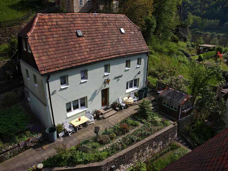 Die Pension befindet sich im Stadtteil Schmilka von Bad Schandau und bietet einen Ausblick auf die Elbe.