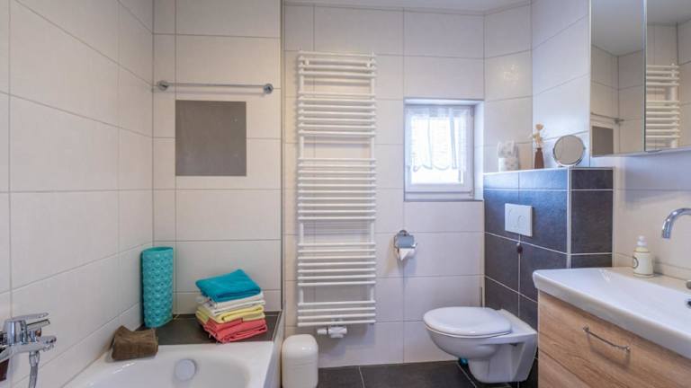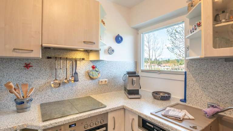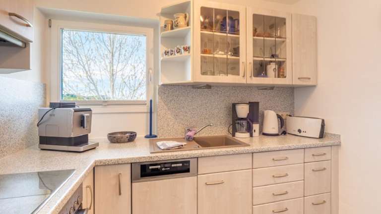 Die Ferienwohnung verfügt über zwei Schlafzimmer, eine Küche mit Kühlschrank und Geschirrspüler sowie ein Badezimmer mit Badewanne, Haartrockner und Waschmaschine. Handtücher und Bettwäsche werden bereitgestellt.
