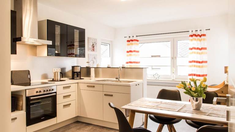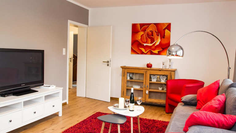 Die Ferienwohnung bietet ein Schlafzimmer, ein Wohnzimmer, eine Terrasse mit Stadtblick, einen Flachbild-TV sowie eine gut ausgestattete Küche mit Kühlschrank und Geschirrspüler. Das Badezimmer ist mit einer Dusche ausgestattet. Handtücher und Bettwäsche werden zur Verfügung gestellt.