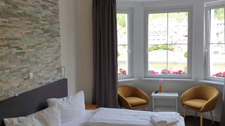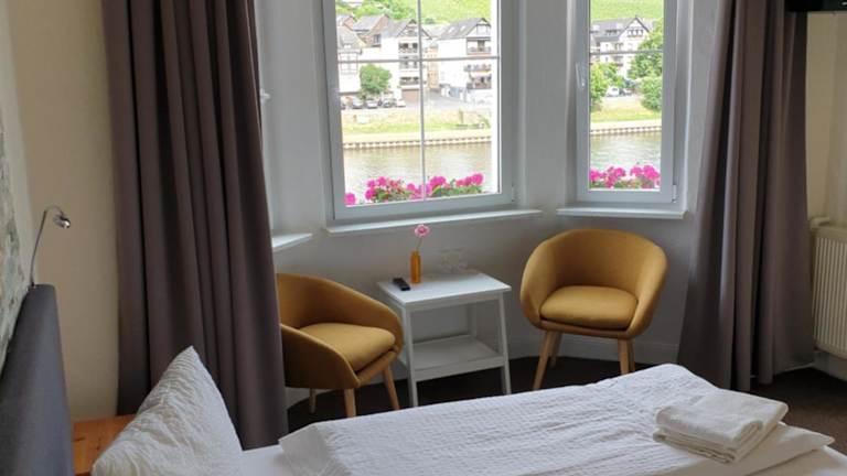 Das Hotel Haus Burgfrieden Cochem ist eine charmante Unterkunft direkt an der Mosel in Cochem. Mit kostenlosem WLAN, Flussblick und einer gemütlichen Gemeinschaftslounge bietet das Hotel alles, was Sie für einen angenehmen Aufenthalt benötigen. Genießen Sie den Komfort der Zimmer mit Sat-TV und eigenem Bad und starten Sie jeden Morgen mit einem herzhaften Frühstück in den Tag. Die Lage des Hotels in der Nähe der Reichsburg Cochem und die gute Anbindung zum Flughafen Köln/Bonn machen es zu einer idealen Wahl für Ihren Aufenthalt in Cochem.
