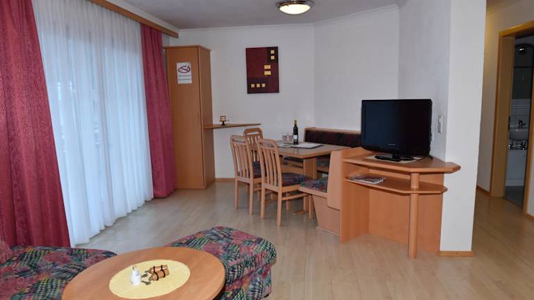 Die Apartments im Haus Carnot sind gemütlich eingerichtet und verfügen über einen Balkon, auf dem Sie die frische Bergluft genießen können. Die Massivholzmöbel und der Parkettboden verleihen den Apartments eine warme Atmosphäre. Zur Ausstattung gehören ein Flachbild-Sat-TV, eine voll ausgestattete Küche mit Essbereich und ein Badezimmer mit Dusche oder Badewanne. Ein kostenfreier Internetzugang (LAN) steht Ihnen in allen Apartments zur Verfügung.