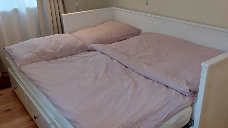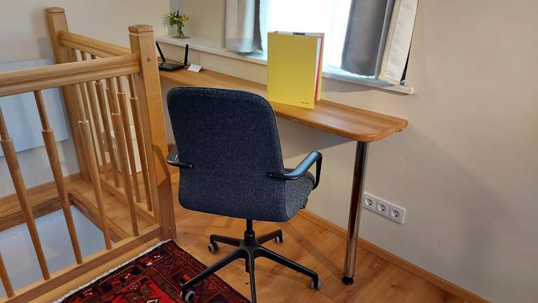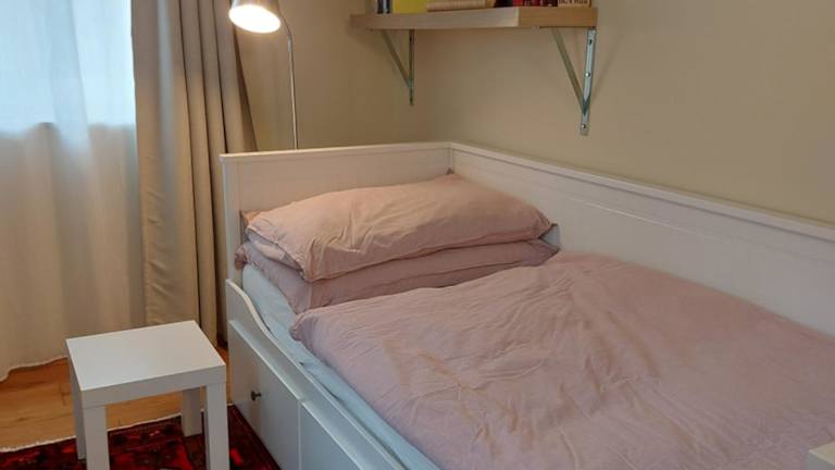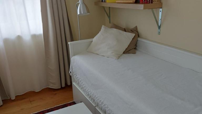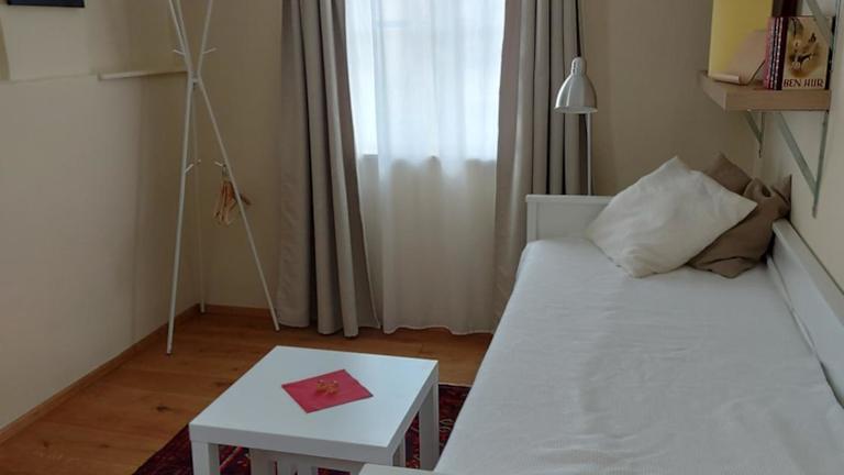 Die Ferienwohnung umfasst ein Schlafzimmer und ein Badezimmer mit Dusche und Haartrockner. Zur Ausstattung gehören zudem eine Kaffeemaschine sowie Handtücher und Bettwäsche.
