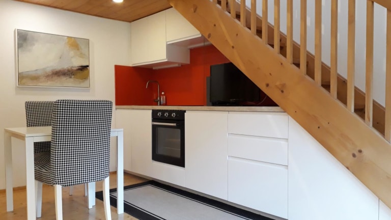 Das besondere an unseren Wohnungen ist die Kombination aus raffinierter Architektur unter Einbindung typischer Tiroler Gemütlichkeit, eingebettet in eine Landschaft die Ruhe und Harmonie vermittelt. Die Wohnungen sind 2-geschoßig. Über eine Treppe gelangt man auf eine offene bzw. mit Glas geschlossene Galerie auf welcher sich jeweils die Schlafmöglichkeiten befinden.