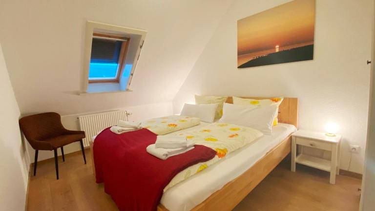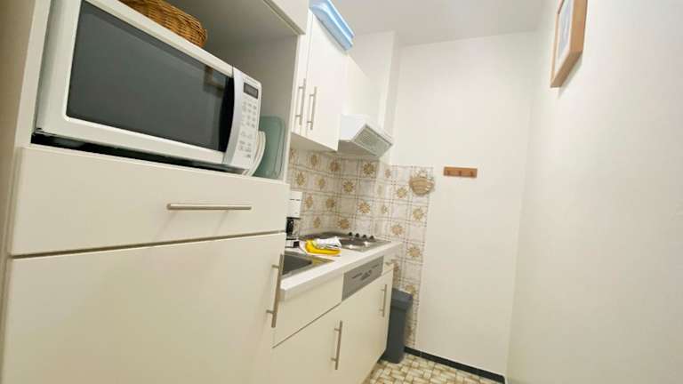 Die Ferienwohnung umfasst ein Schlafzimmer und ist mit einem TV mit Satellitenkanälen sowie einer voll ausgestatteten Küche ausgestattet. Diese beinhaltet einen Kühlschrank, Geschirrspüler, Waschmaschine, Mikrowelle und Herdplatte. Handtücher und Bettwäsche werden ebenfalls bereitgestellt.