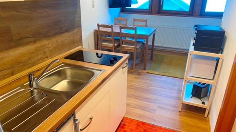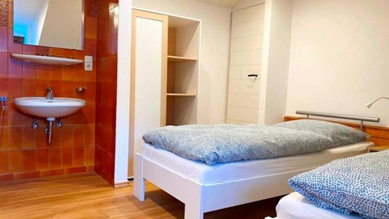 Die Ferienwohnung verfügt über 2 Schlafzimmer, ein Wohnzimmer sowie eine voll ausgestattete Küchenzeile mit Kühlschrank und Kaffeemaschine. Es gibt 1 Badezimmer mit Dusche und Haartrockner. Handtücher und Bettwäsche werden bereitgestellt.